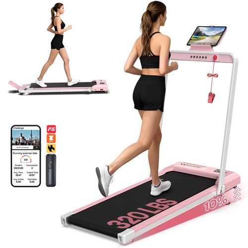 YZRUN Treadmill with Handle Bar, Under Desk Walking Pad with 8% Incline, Foldable Treadmills for Home, 320 LBS Capacity